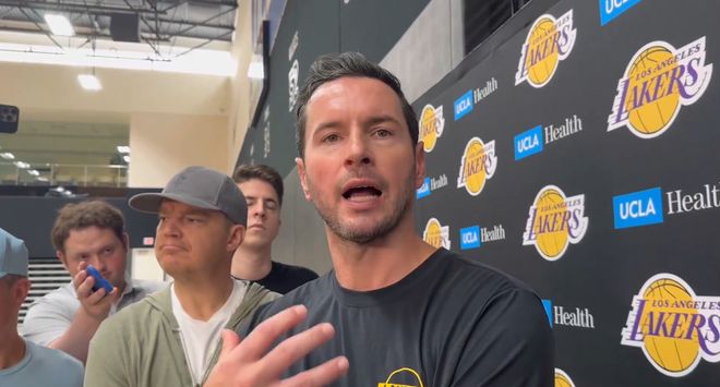 主教练雷迪克今天谈到湖人攻防两端的表现,对于这两场季前赛的转换防守,雷迪克直言湖人防得像狗屎一样。