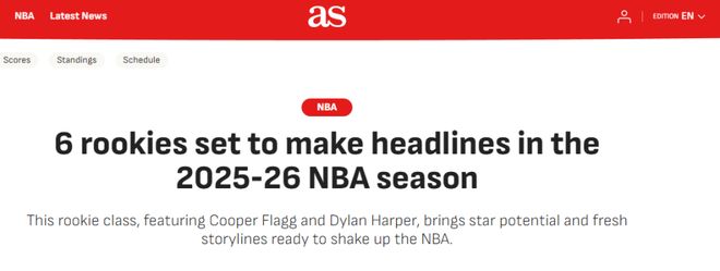 北京时间10月17日,外媒《阿斯报》评出新赛季值得关注的6大新秀,中国球员杨瀚森名列其中。以下他们对这6位新秀的简评和展望——