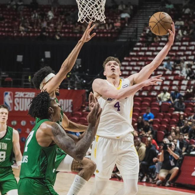 克内克特出生于2001年4月19日,2024年的首轮17号秀,他比很多同届新秀大3岁,甚至比2021届的库明加还要大1岁半。在NBA当中,20岁的球员跟24岁球员的发展前景肯定不一样。最后一问:你觉得湖人还能送走克内克特吗?
