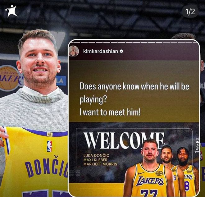 在个人社交媒体上,金-卡戴珊先是发文:有人知道东契奇什么时候上吗?我想见他。只是对于这样的事情,东契奇并没有回复,后来卡戴珊又再次发文,她在社媒上的东契奇照片下面留言,表示自己想学斯诺文尼亚语,还附上了亲吻的照片,这可把东契奇吓坏了,他直接回复:不用了。而很有意思的是,前NBA球员奥多姆,也就是科勒-卡戴珊的前夫直接留言给出忠告道:她会吸干你的,就像《空中大灌篮》中几个球星被外星人吸干球技一样。